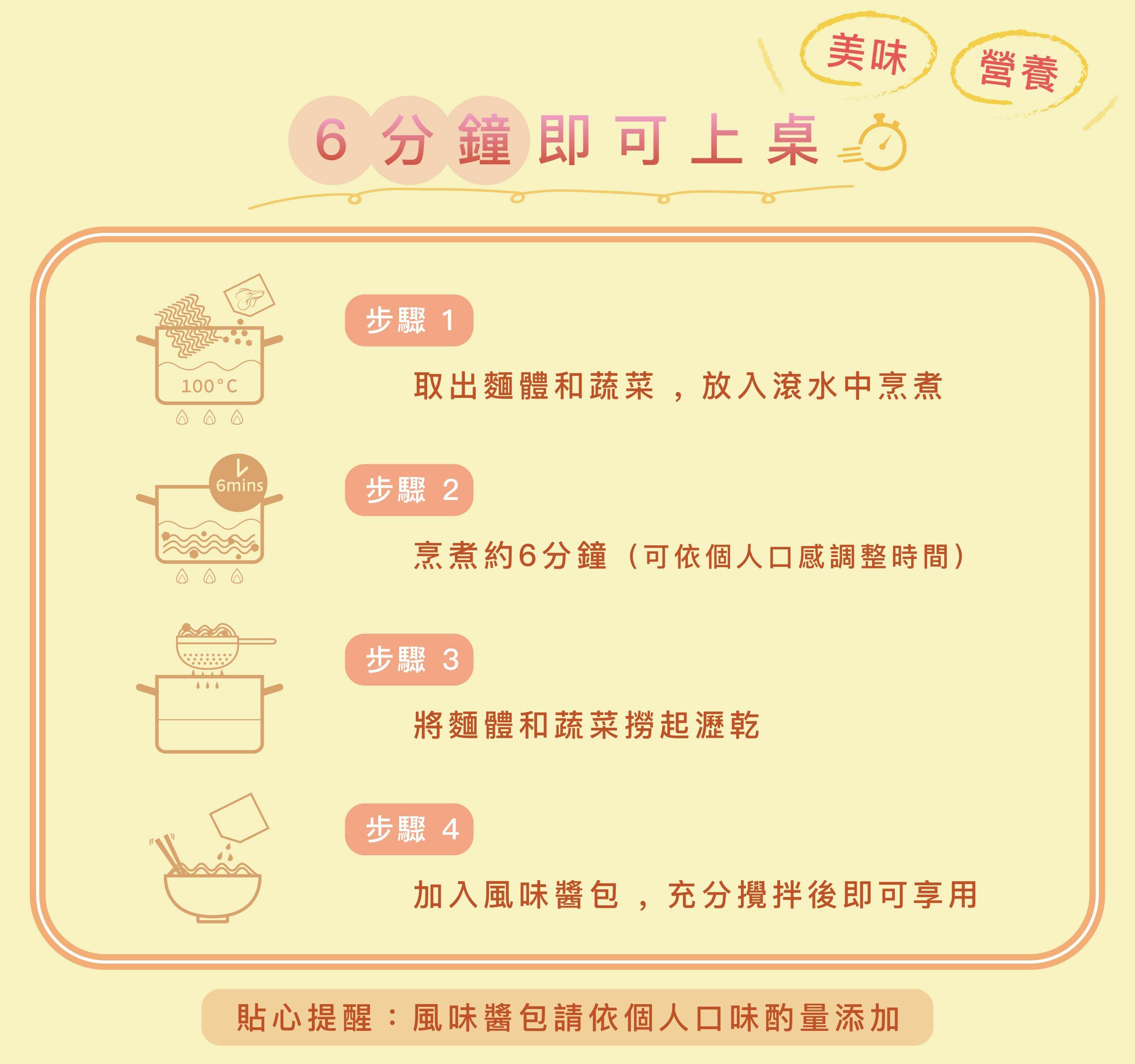 Q彈麵條、營養蔬菜包、風味醬包 各3入